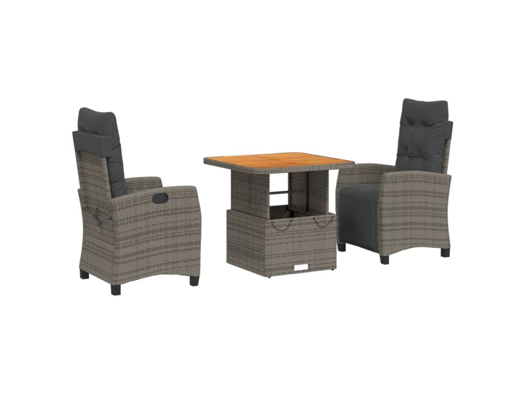 3dílný zahradní jídelní set s poduškami šedý polyratan 3277399