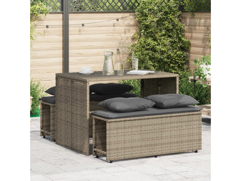 3dílný zahradní jídelní set s poduškami šedý polyratan 4003904