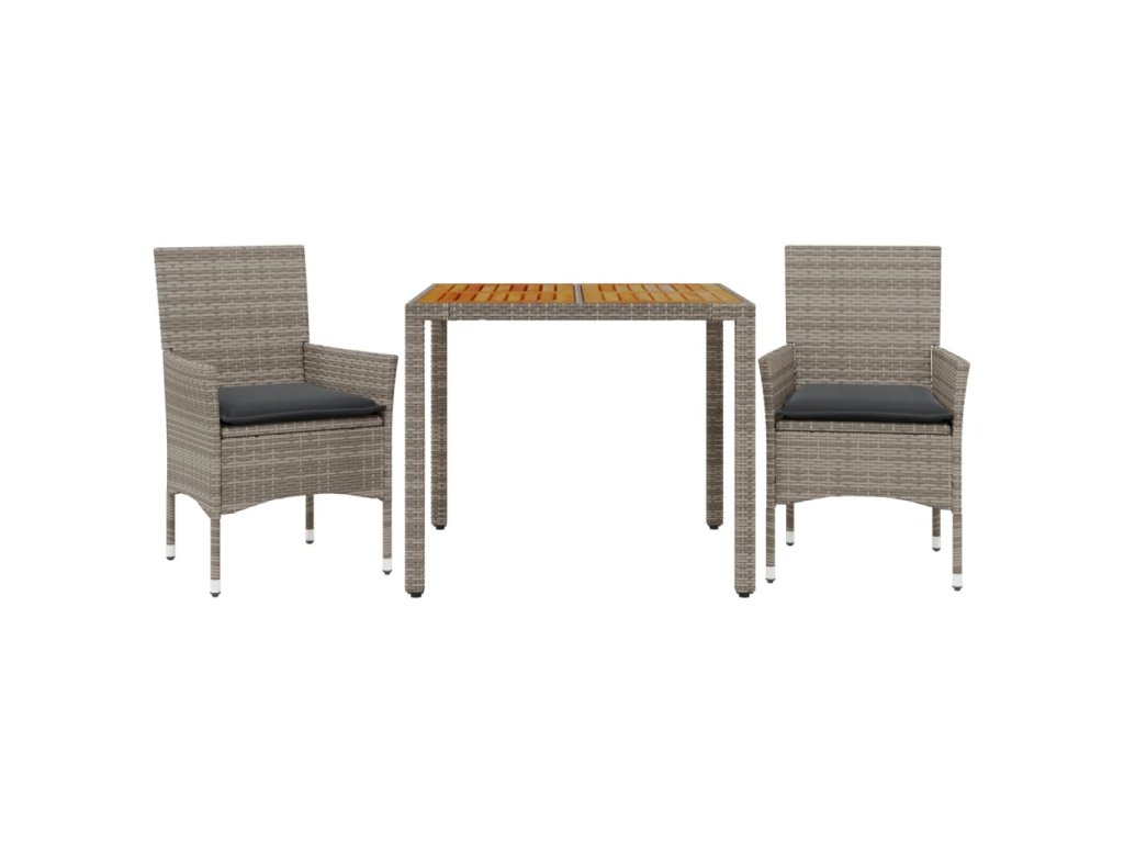 3dílný zahradní jídelní set s poduškami šedý polyratan a akácie 3278675