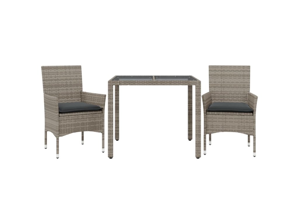 3dílný zahradní jídelní set s poduškami šedý polyratan a sklo 3278555