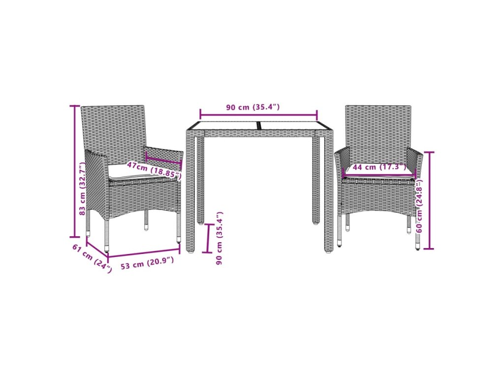 - Materiál: PE ratan, práškově lakovaná ocel, tvrzené sklo