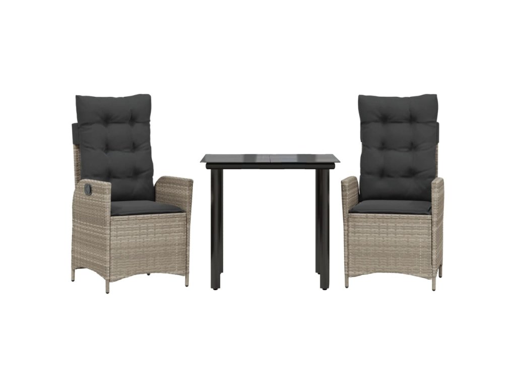 3dílný zahradní jídelní set s poduškami světle šedý polyratan 3213284