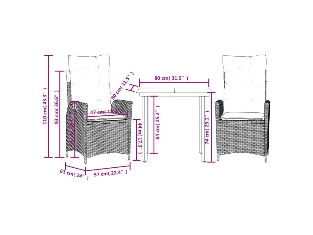 - Rozměry při poloze vsedě: 57 x 61 x 93 cm (Š x H x V)