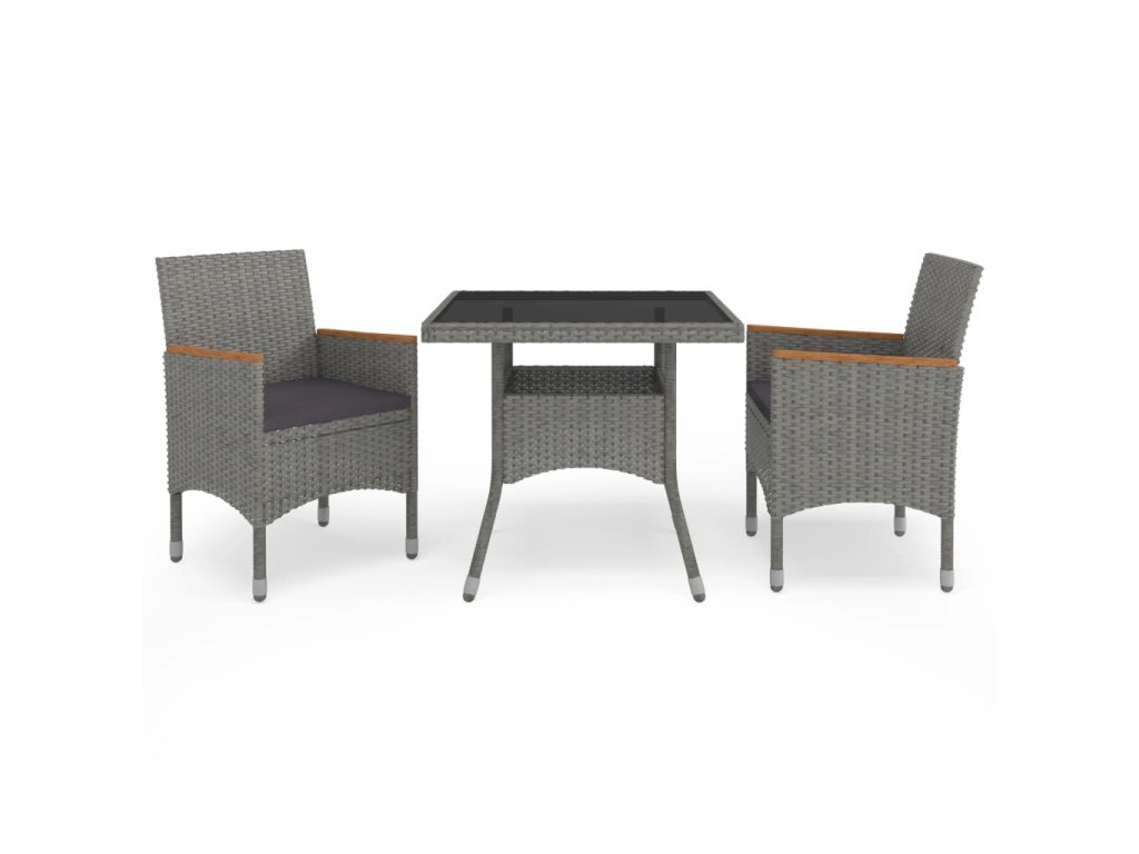 3dílný zahradní jídelní set šedý polyratan a akáciové dřevo 3058315