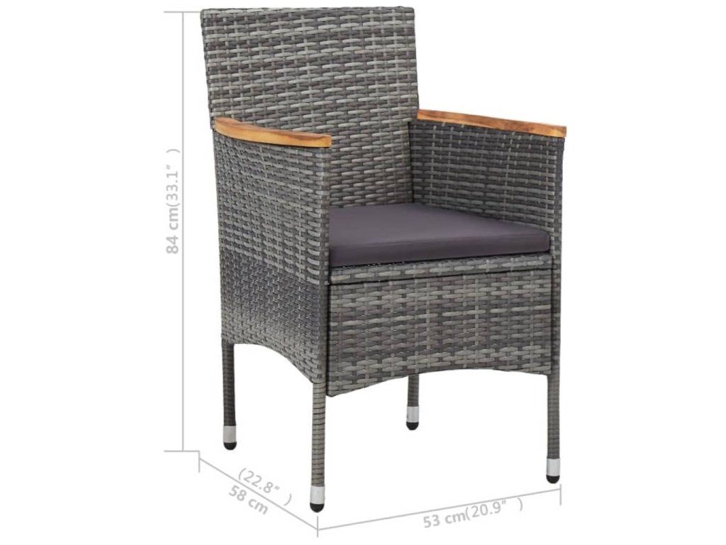 3dílný zahradní jídelní set šedý polyratan a akáciové dřevo 3058317