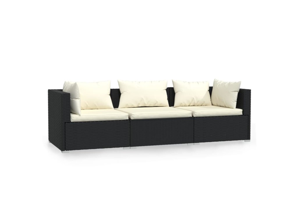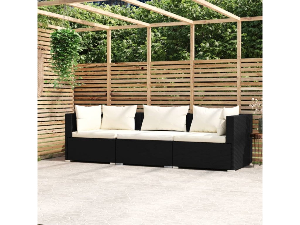 3místná pohovka s poduškami černá polyratan 317489