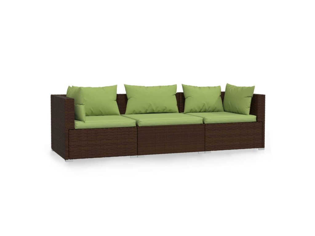 3místná pohovka s poduškami hnědá polyratan 317555