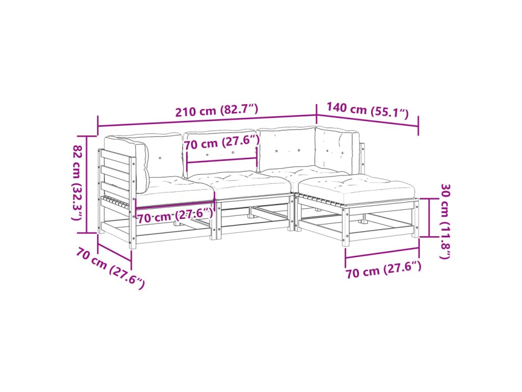 4dílná zahradní sedací souprava a podušky impregnovaná borovice 3295817
