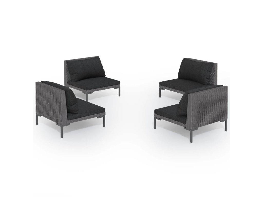 4dílná zahradní sedací souprava a podušky polyratan tmavě šedá 3099803