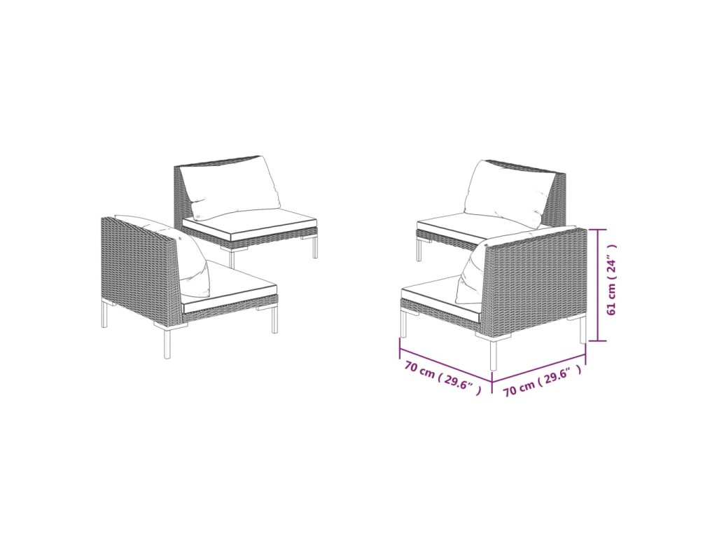 - Rozměry (jednotlivé): 70 x 70 x 61 cm (Š x H x V)