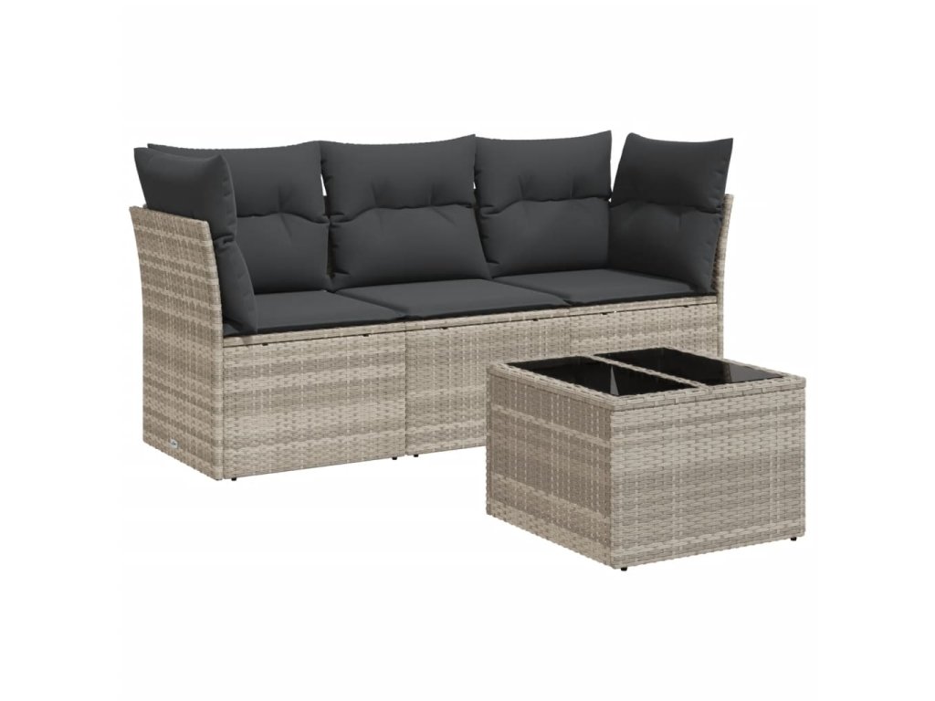 4dílná zahradní sedací souprava a podušky světle šedá polyratan 3217222