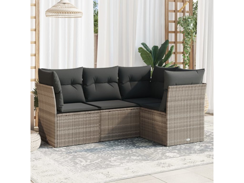 4dílná zahradní sedací souprava a podušky světle šedá polyratan 3217582
