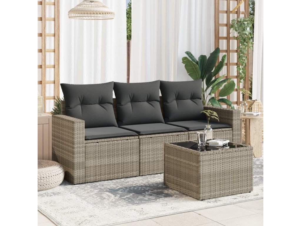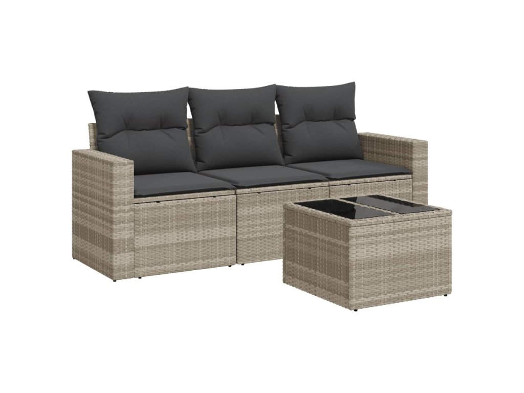 4dílná zahradní sedací souprava a podušky světle šedá polyratan 3218662