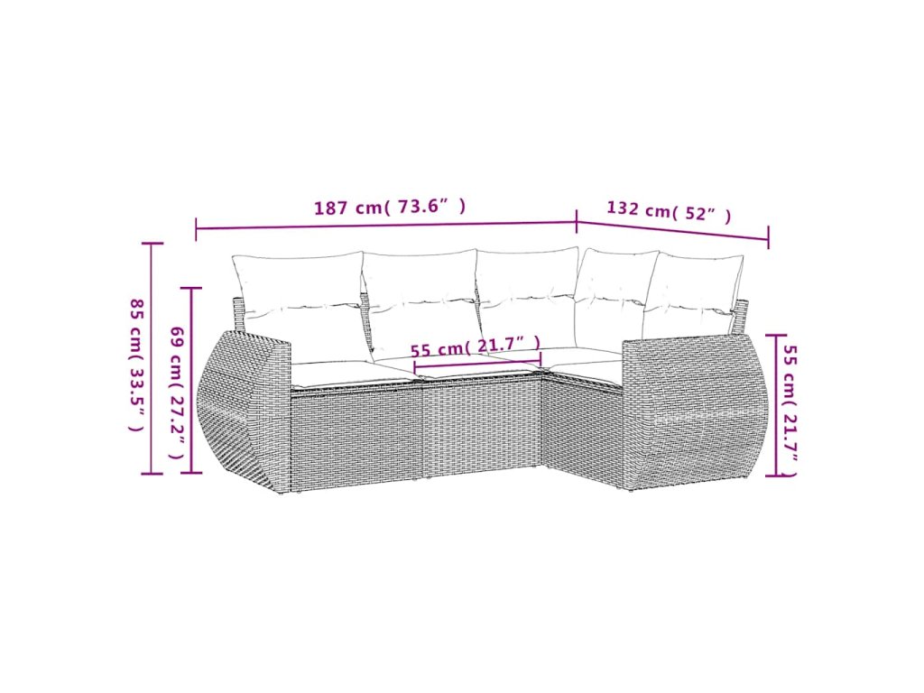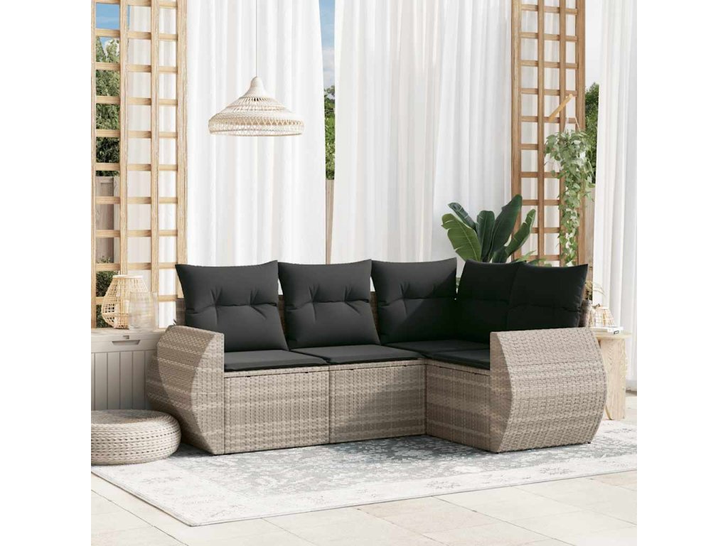 4dílná zahradní sedací souprava a podušky světle šedá polyratan 3221311