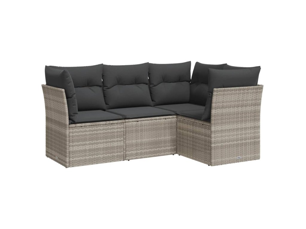 4dílná zahradní sedací souprava a podušky světle šedá polyratan 3249421