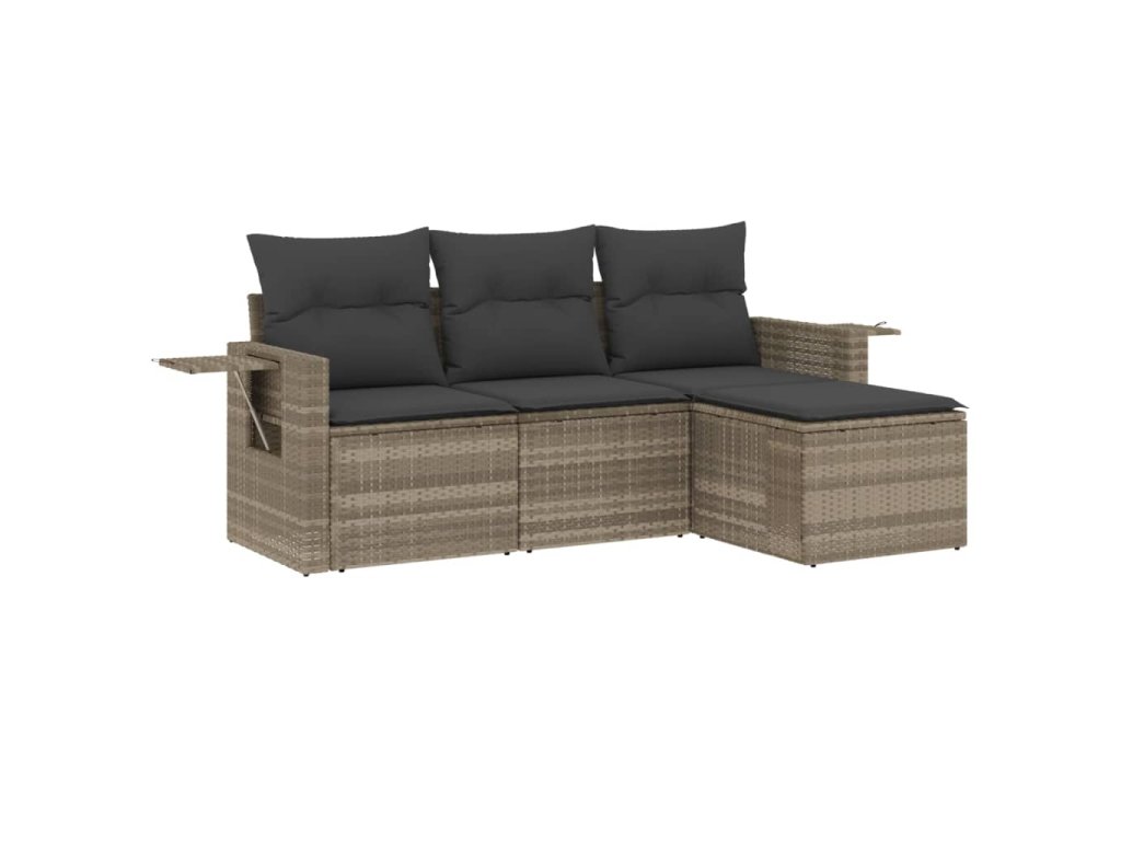 4dílná zahradní sedací souprava a podušky světle šedá polyratan 3252409