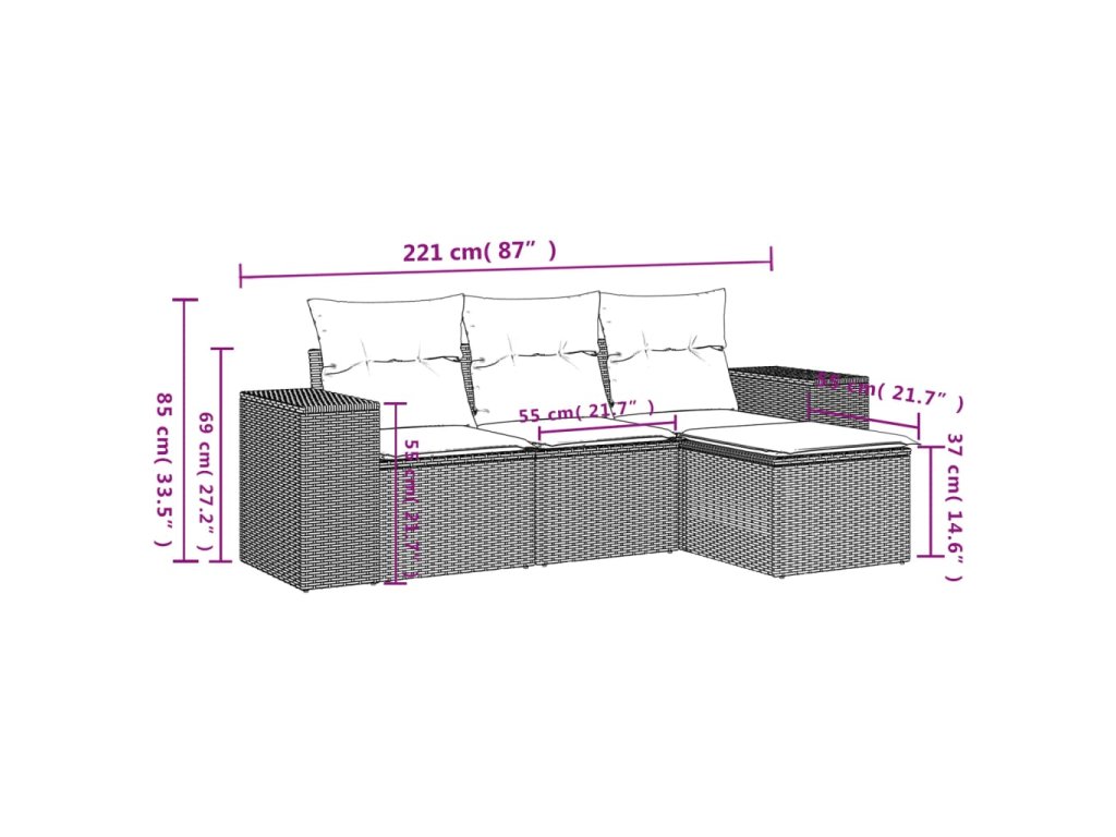 4dílná zahradní sedací souprava a podušky světle šedá polyratan 3254809