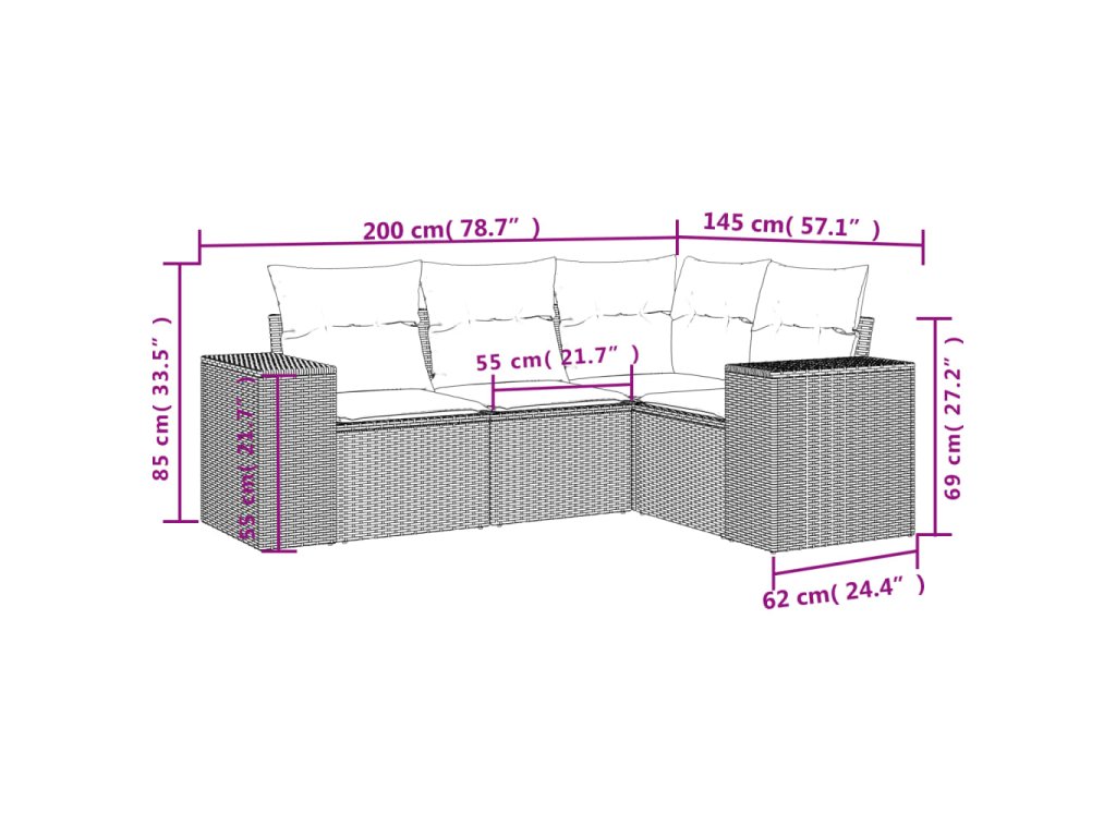 Tato zahradní sedací souprava je dokonalým doplňkem vaší zahrady, terasy nebo dvorku a poskytne vám pohodlné a příjemné místo, kde si můžete povídat s rodinou a přáteli nebo jen tak odpočívat a užívat si pobyt venku.