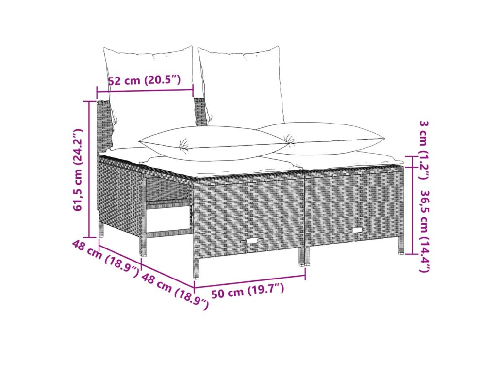 - Rozměry zahradní pohovky (každá): 52 x 48 x 61,5 cm (Š x H x V)
