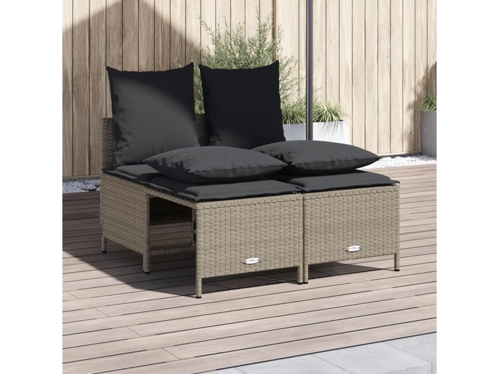 4dílná zahradní sedací souprava a podušky světle šedá polyratan 368385