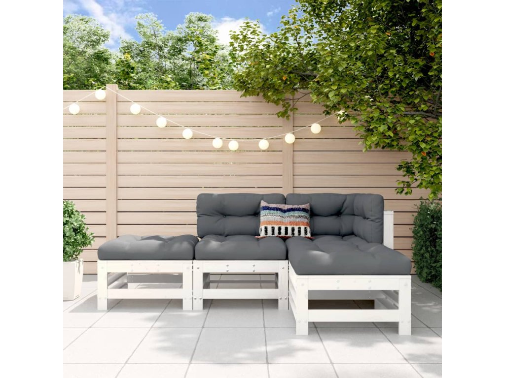 4dílná zahradní sedací souprava bílá masivní borovice 3186502