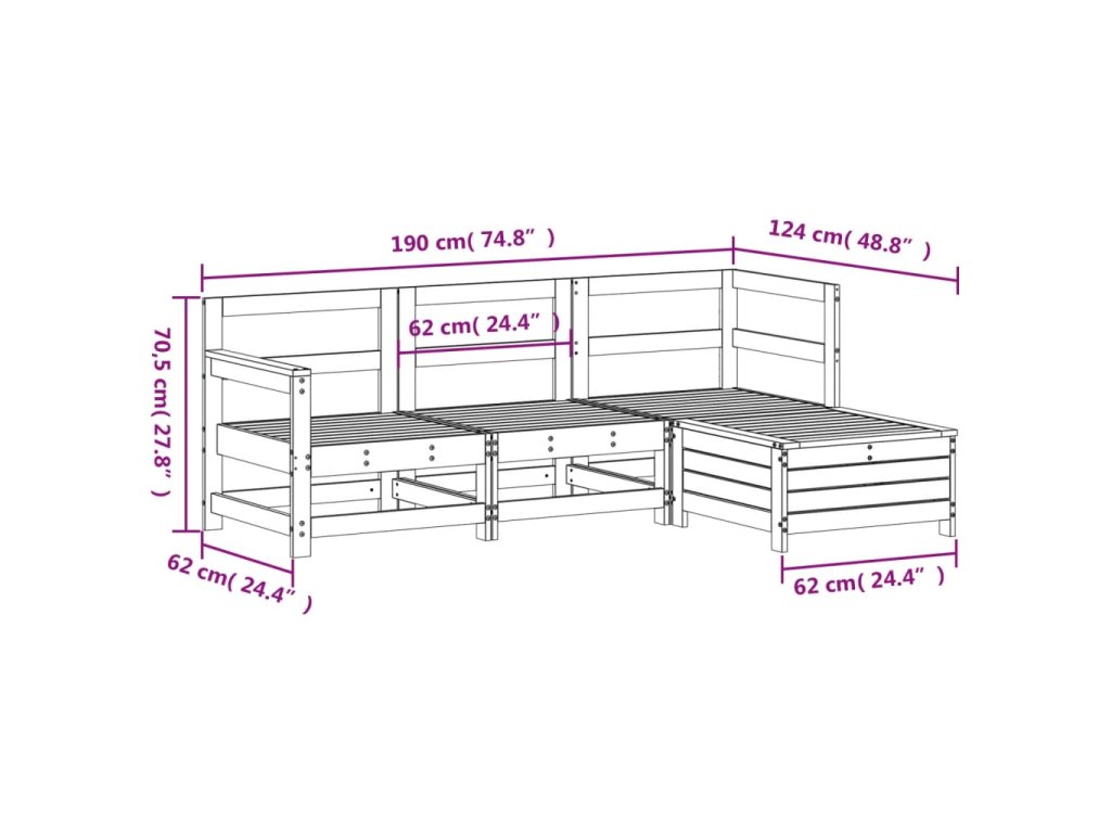 4dílná zahradní sedací souprava bílá masivní borovice 3250777