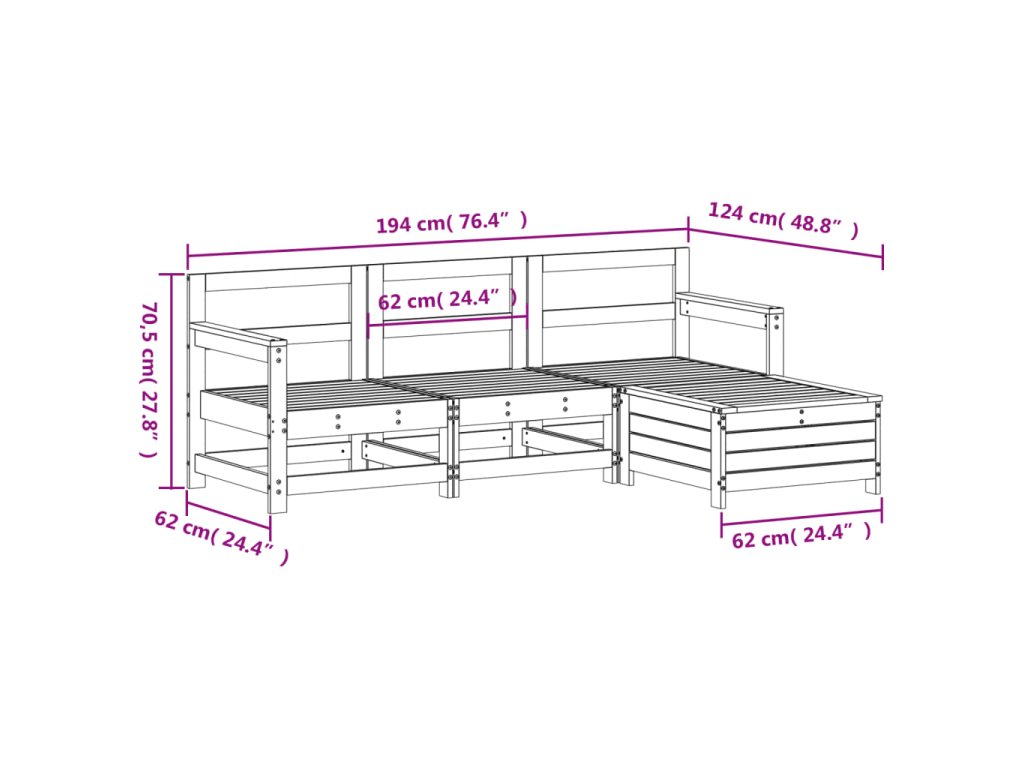 4dílná zahradní sedací souprava bílá masivní borovice 3250801