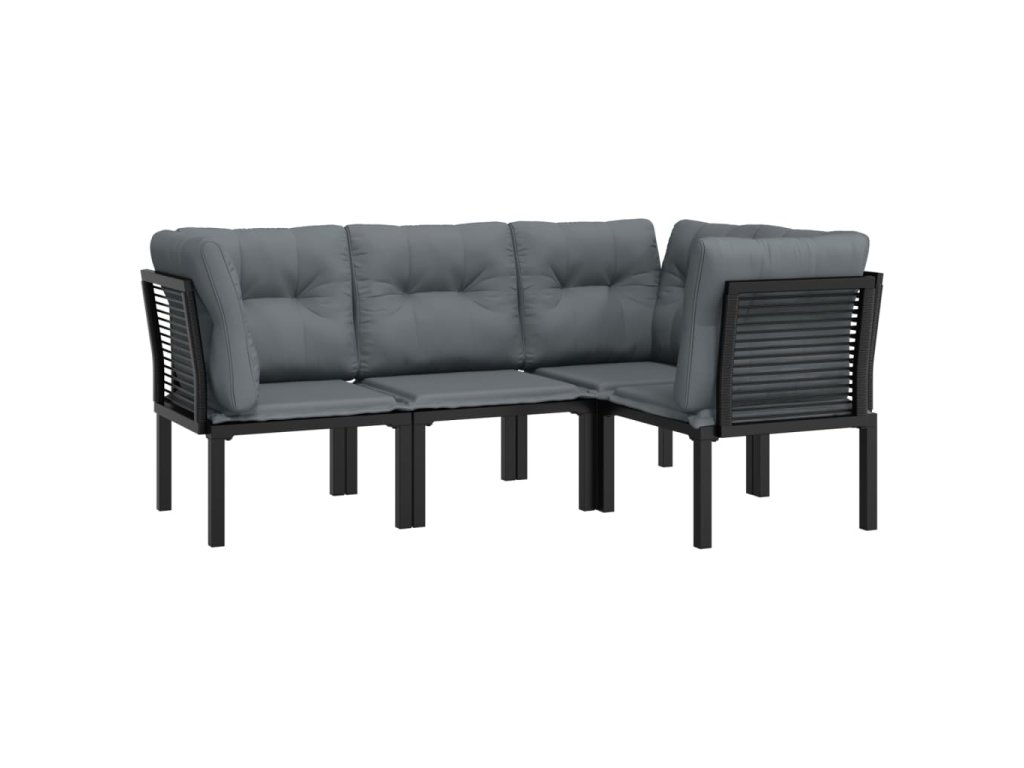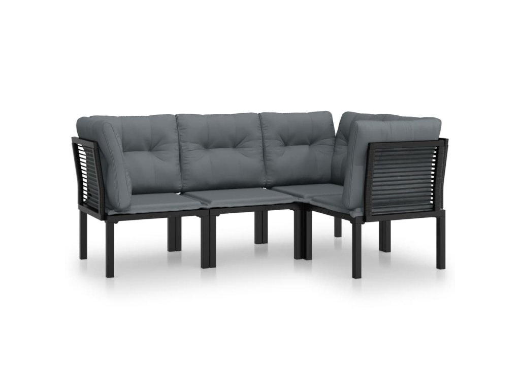 4dílná zahradní sedací souprava černá a šedá polyratan 3187751