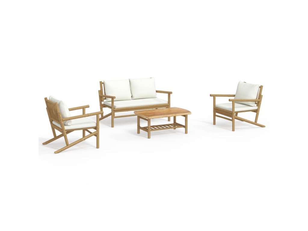 4dílná zahradní sedací souprava krémově bílé podušky bambus 3156471