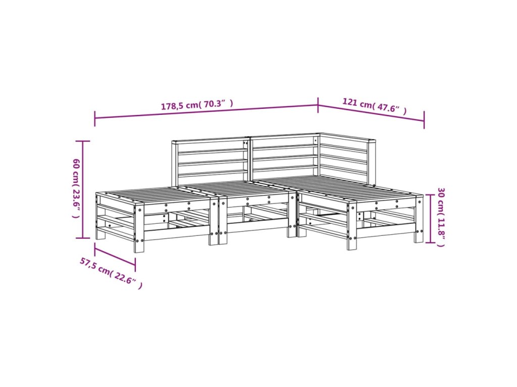4dílná zahradní sedací souprava masivní borovice 3186501
