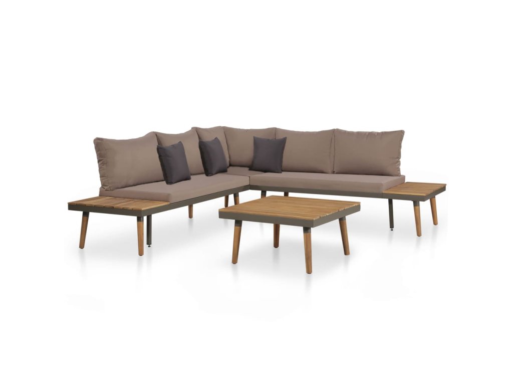 Naše sada zahradního nábytku se snadno čistí a jen tak se nepoškodí. Je vyrobena z masivního akáciového dřeva, což je tropické tvrdé dřevo, které je odolné vůči povětrnostním vlivům a vydrží dlouhá léta používání. Díky pevnému ocelovému rámu je souprava velmi stabilní a odolná. Na malé dřevěné části si navíc můžete položit malé občerstvení, nápoje, šálky na čaj, knihy nebo jiné drobné předměty. Součástí této sady jsou i mimořádně pohodlné, hustě polstrované podušky a polštáře. Polyesterové potahy jsou nenáročné na údržbu a je snadné je sejmout a vyprat. Tuto soupravu je třeba sestavit.