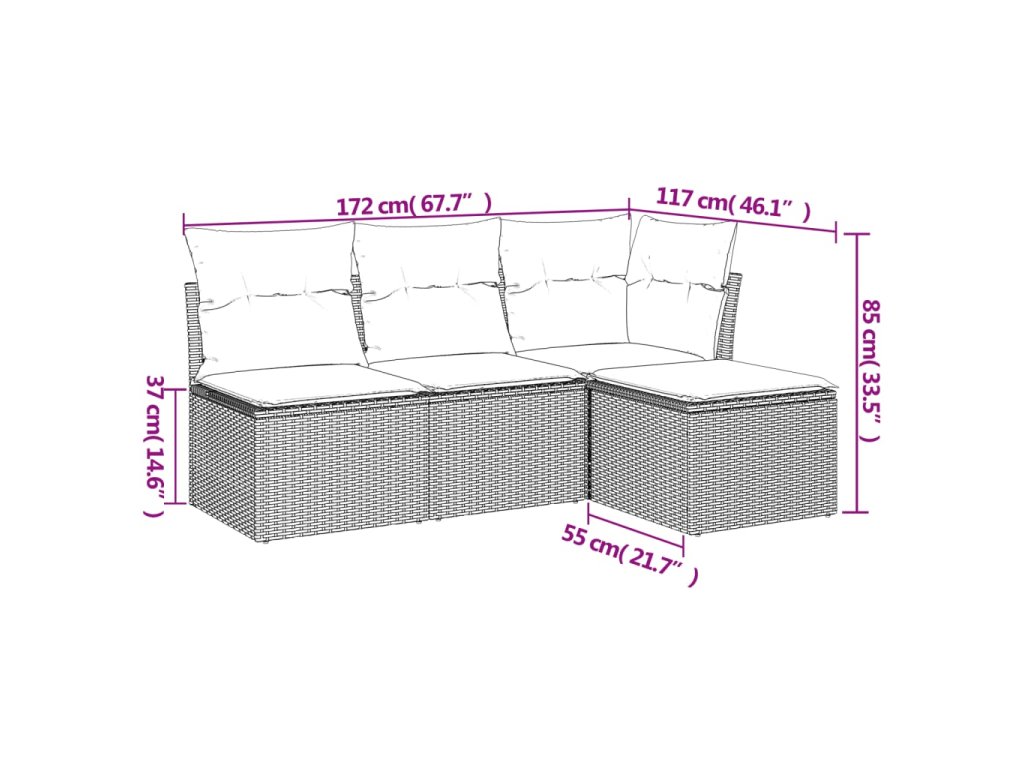Tato zahradní sedací souprava je dokonalým doplňkem vaší zahrady, terasy nebo dvorku a poskytne vám pohodlné a příjemné místo, kde si můžete povídat s rodinou a přáteli nebo jen tak odpočívat a užívat si pobyt venku.