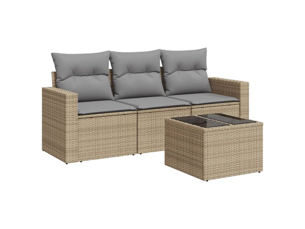 4dílná zahradní sedací souprava s poduškami béžová polyratan 3218659