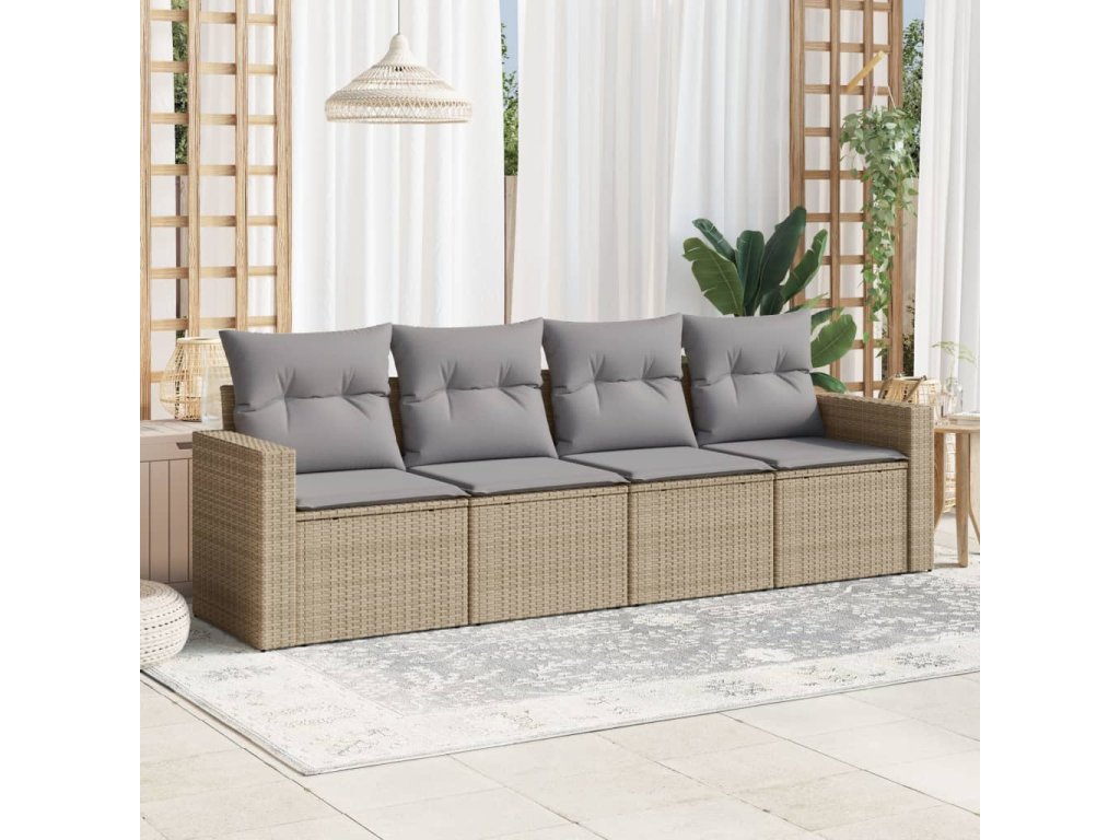 4dílná zahradní sedací souprava s poduškami béžová polyratan 3218669