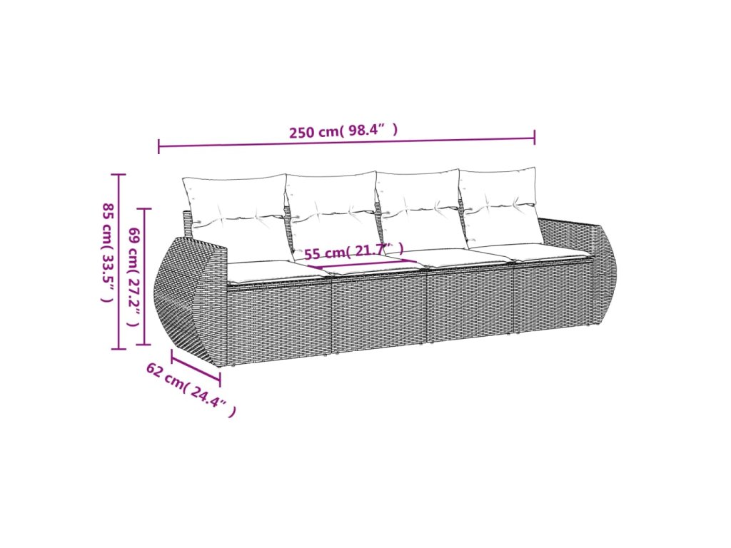 Tato zahradní sedací souprava je dokonalým doplňkem vaší zahrady, terasy nebo dvorku a poskytne vám pohodlné a příjemné místo, kde si můžete povídat s rodinou a přáteli nebo jen tak odpočívat a užívat si pobyt venku.