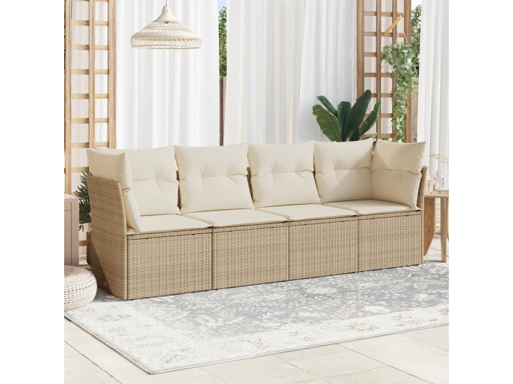 4dílná zahradní sedací souprava s poduškami béžová polyratan 3249067