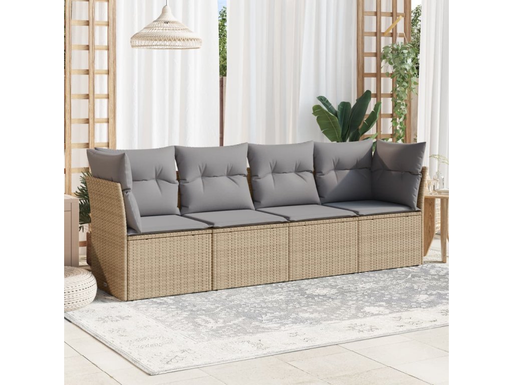 4dílná zahradní sedací souprava s poduškami béžová polyratan 3249068