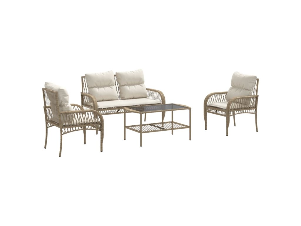 4dílná zahradní sedací souprava s poduškami béžová polyratan 368730