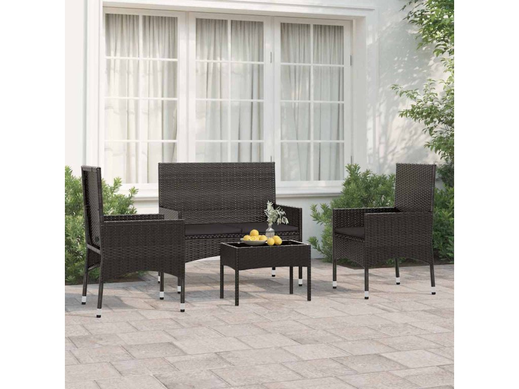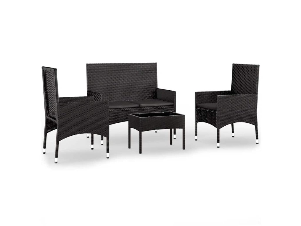 4dílná zahradní sedací souprava s poduškami černá polyratan 319498