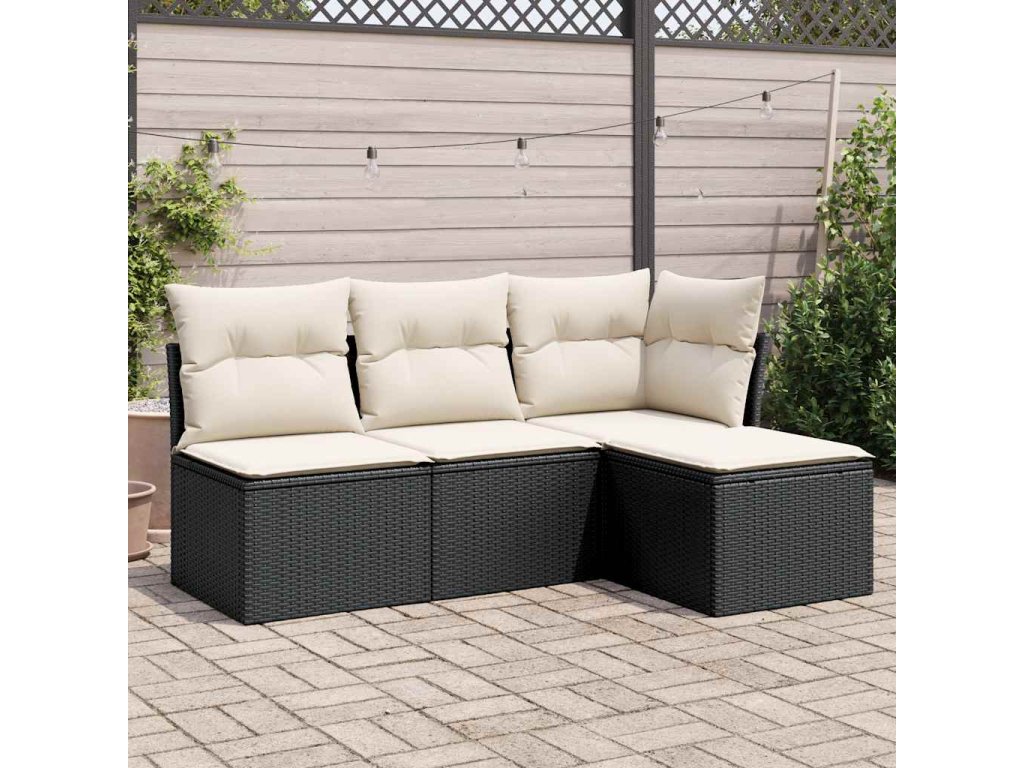 4dílná zahradní sedací souprava s poduškami černá polyratan 3217496