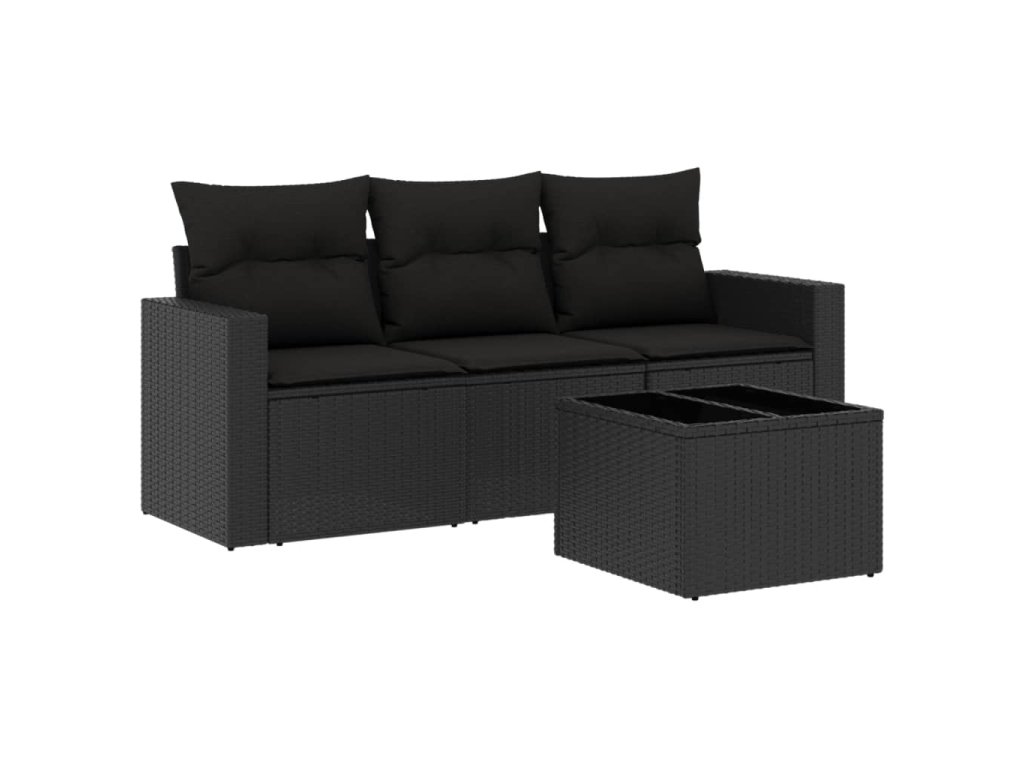 4dílná zahradní sedací souprava s poduškami černá polyratan 3218655