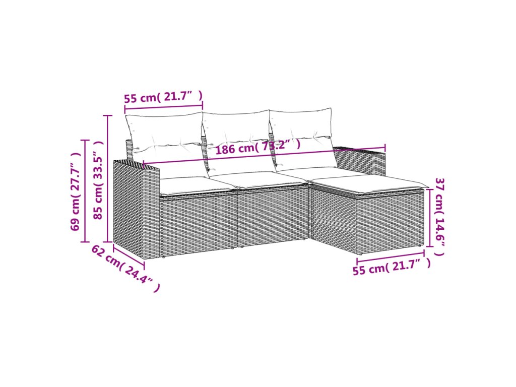 Tato zahradní sedací souprava je dokonalým doplňkem vaší zahrady, terasy nebo dvorku a poskytne vám pohodlné a příjemné místo, kde si můžete povídat s rodinou a přáteli nebo jen tak odpočívat a užívat si pobyt venku.