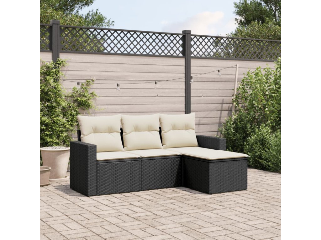 4dílná zahradní sedací souprava s poduškami černá polyratan 3218856