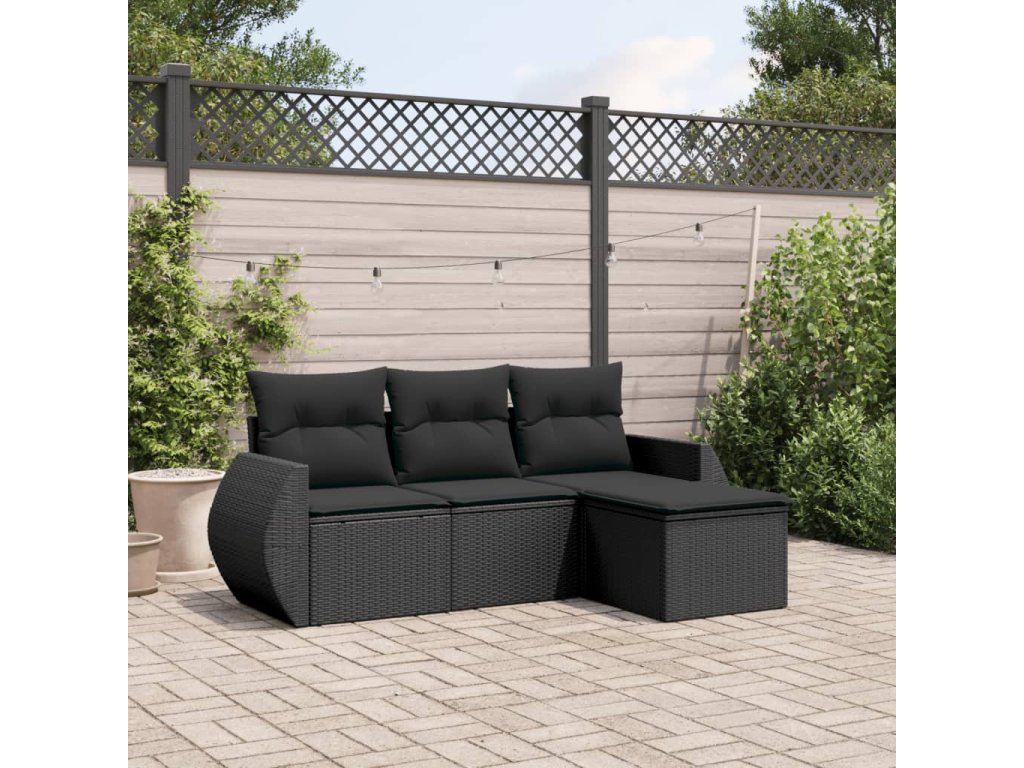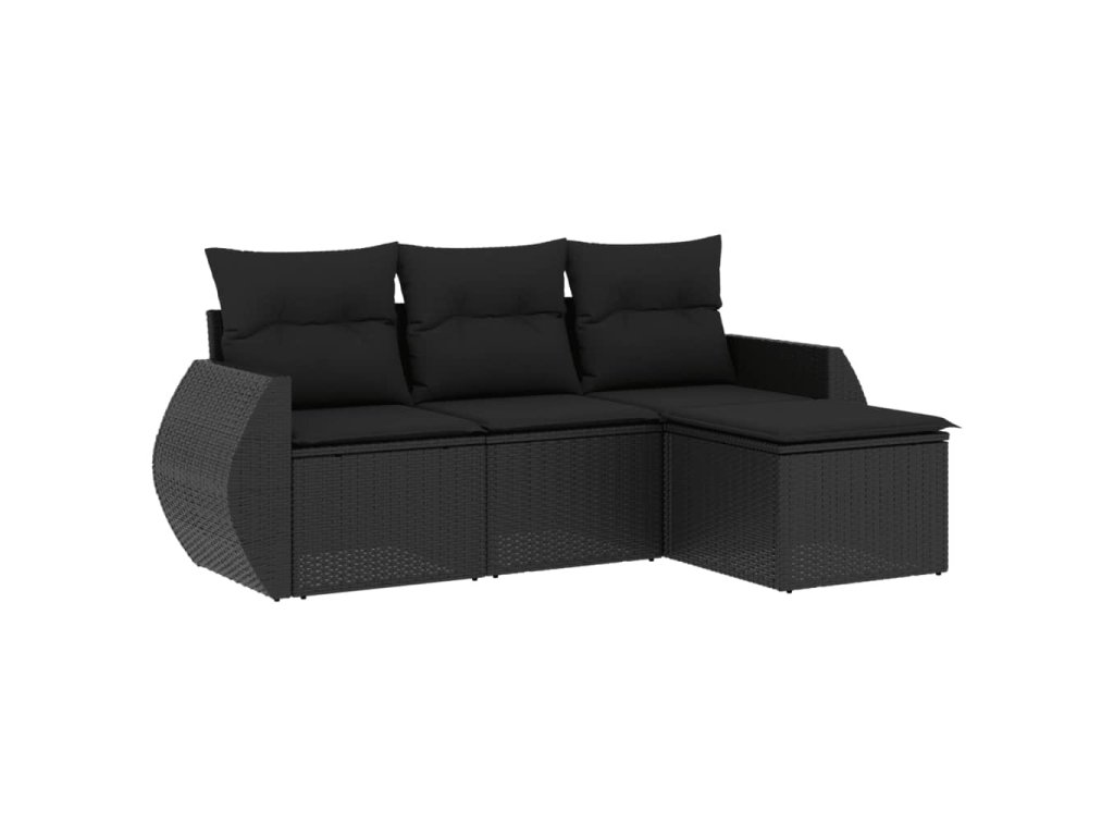 4dílná zahradní sedací souprava s poduškami černá polyratan 3221264