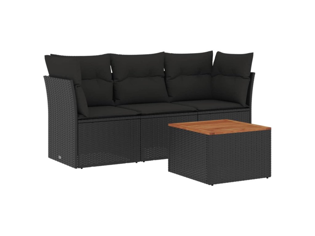 4dílná zahradní sedací souprava s poduškami černá polyratan 3223465