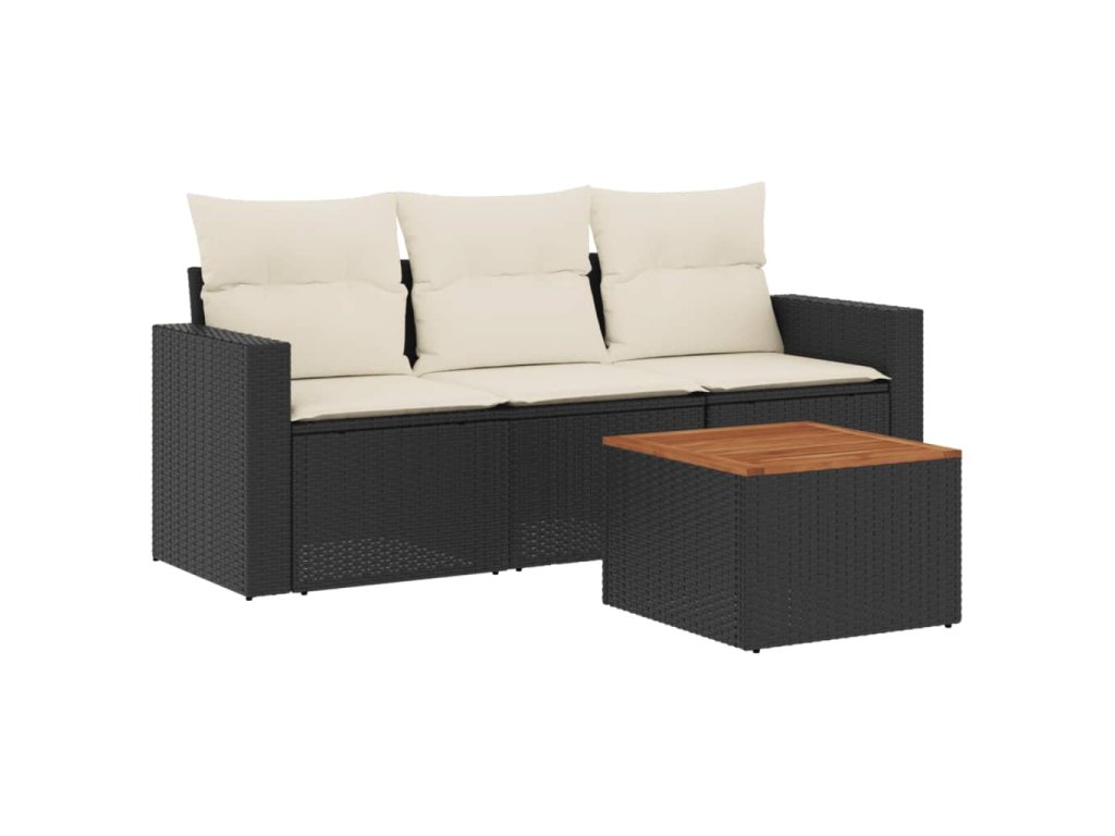 4dílná zahradní sedací souprava s poduškami černá polyratan 3223991