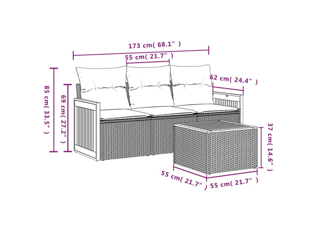 Tato zahradní sedací souprava je dokonalým doplňkem vaší zahrady, terasy nebo dvorku a poskytne vám pohodlné a příjemné místo, kde si můžete povídat s rodinou a přáteli nebo jen tak odpočívat a užívat si pobyt venku.