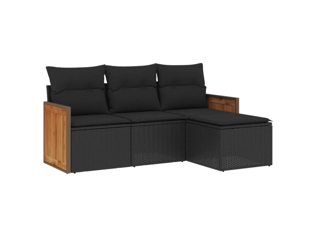4dílná zahradní sedací souprava s poduškami černá polyratan 3227581