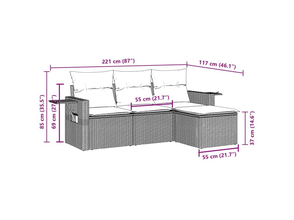 Tato zahradní sedací souprava je dokonalým doplňkem vaší zahrady, terasy nebo dvorku a poskytne vám pohodlné a příjemné místo, kde si můžete povídat s rodinou a přáteli nebo jen tak odpočívat a užívat si pobyt venku.
