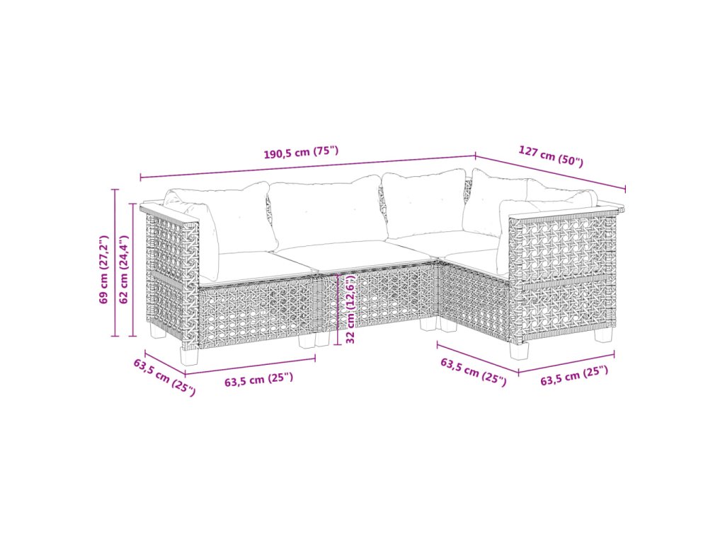 4dílná zahradní sedací souprava s poduškami černá polyratan 3261800